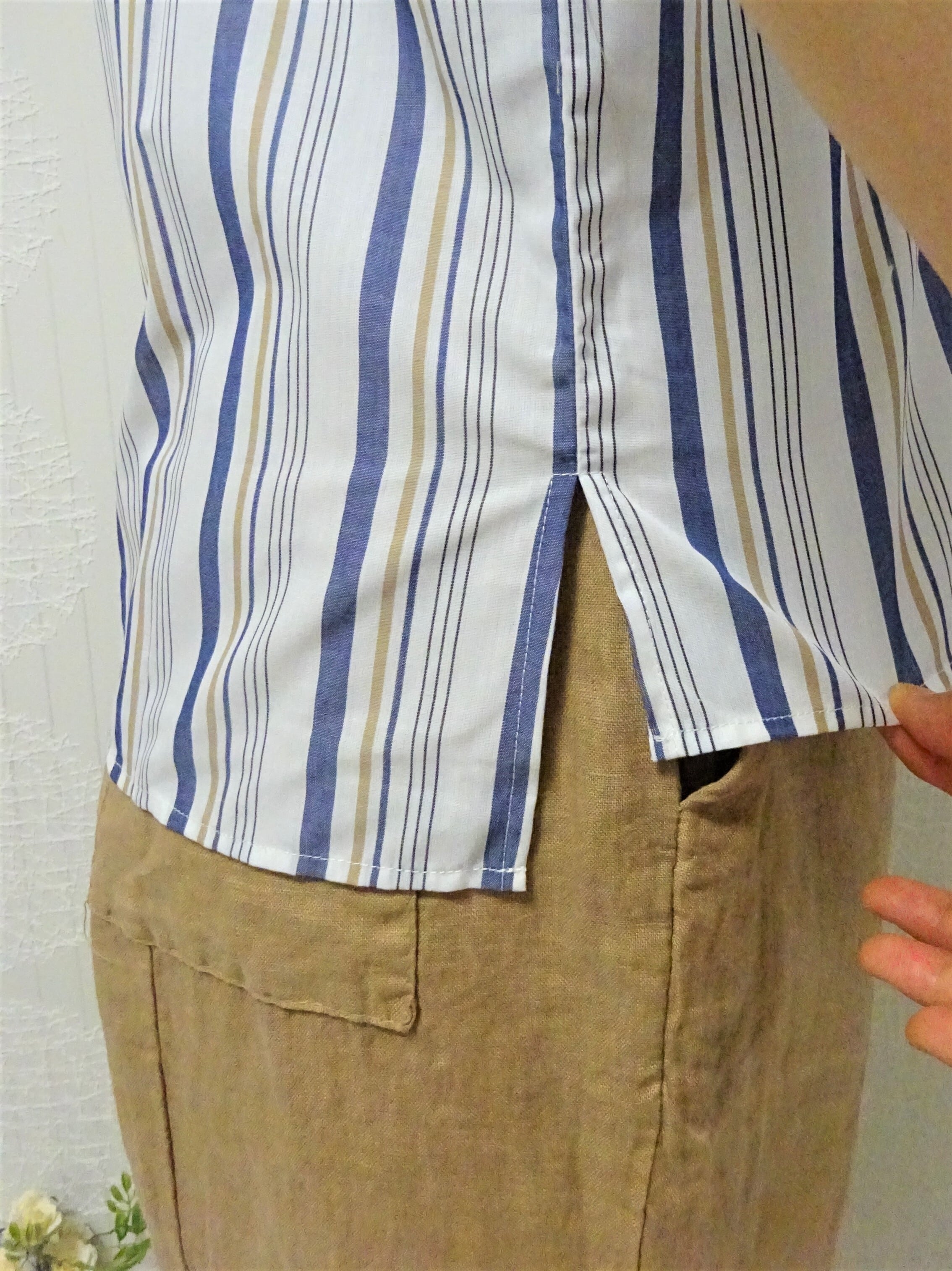 国内ブランドストライプ柄のプルオーバーブラウス